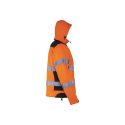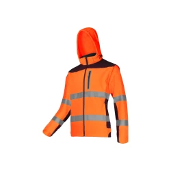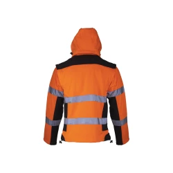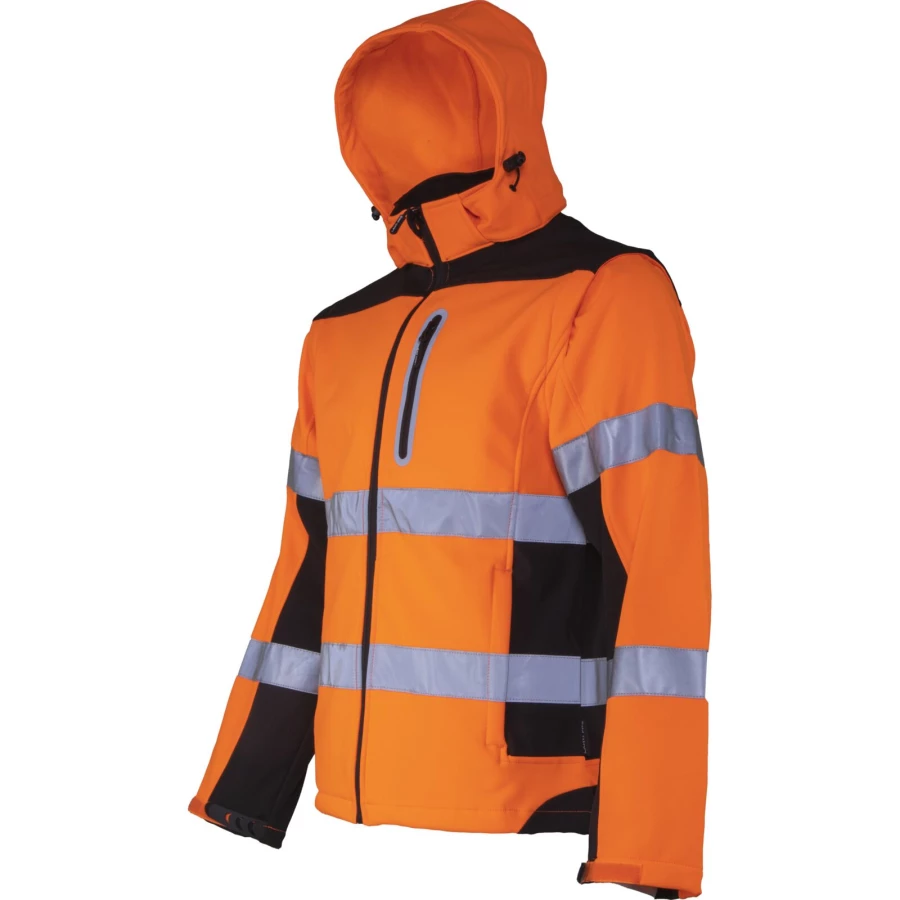 - Specjalna 3-warstwowa tkanina soft-shell z membraną TPU, wodoodporna (8000 mm), oddychająca (3000 g/m²/24h), gwarantujaca wysoki komfort użytkowania