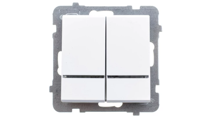 SONATA Łącznik dwugrupowy świecznikowy z podświetleniem niebieskim biały mat ŁP-2RS/m/75
