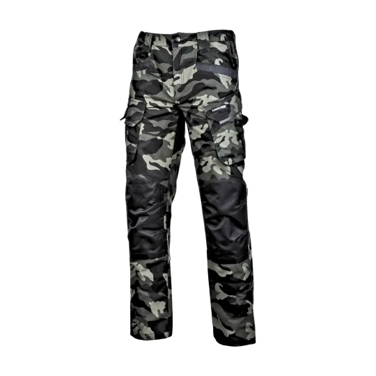 - Wzmocnione kieszenie boczne, kieszenie na ochraniacze kolan oraz dół spodni materiałem (Dobby Oxford poliester) odpornym na przetarcia