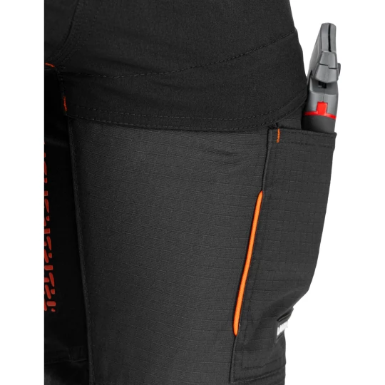 - Tył spodni oraz kieszenie na ochraniacze kolan pokryte antypoślizgową gumą