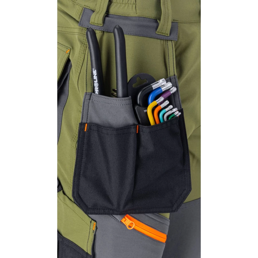 - Praktyczne kieszenie monterskie z możliwością odpięcia