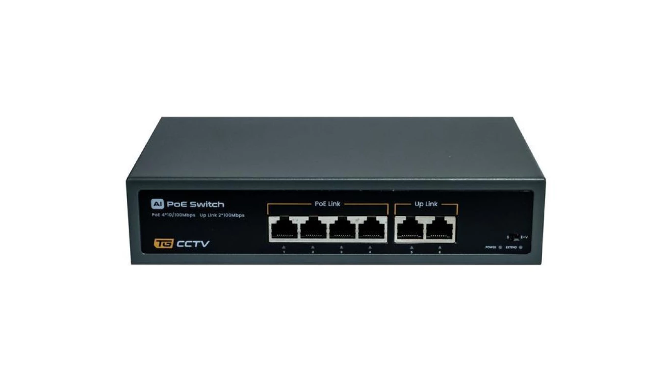 Switch 4x PoE 10/100 Mbps 802.3af/at + 2x Uplink 10/100 Mbps, 78W, tryb Extend (250m)