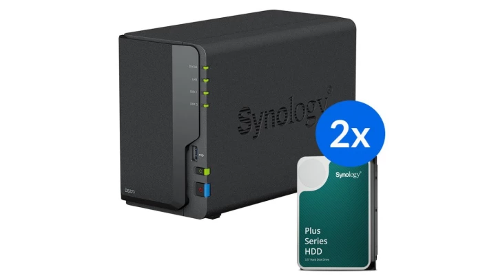 Synology DS223 /24T 2-zatokowy serwer NAS w zestawie z dyskami o łącznej pojemności 24TB, Tower
