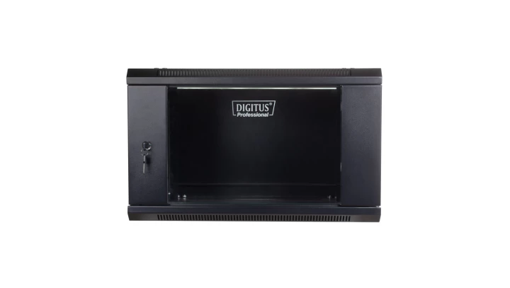 Szafa wisząca jednosekcyjna 19 cali 4U 279/600/450mm drzwi szklane czarna (RAL 9004) niezmontowana DN-WU19 04U/450/B