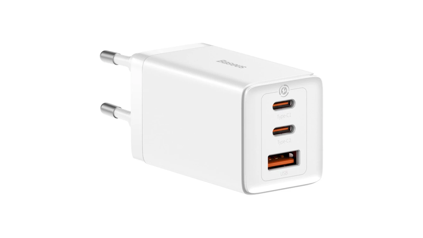 Szybka ładowarka sieciowa GaN 2xUSB C 1xUSB 65W Baseus GaN5 Pro + kabel USB C - USB C 100W - biała