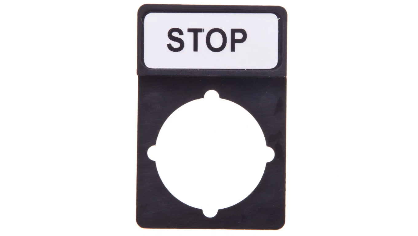 Tabliczka opisowa STOP 44x30mm czarna prostokątna ST22-1901\P03