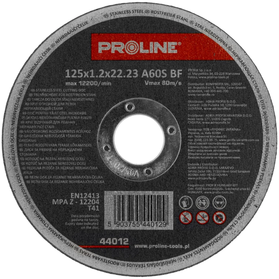 TARCZE DO CIĘCIA STALI KWAS.T41,125X1.2X22A60S PROLINE 10SZT
