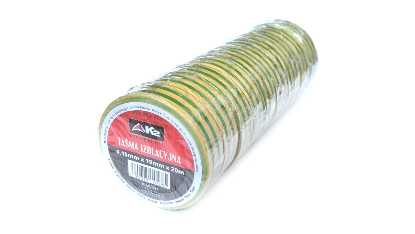 Taśma izolacyjna z PVC 0,13mm/19mm/20m ŻÓŁTO-ZIELONA (10 szt.)