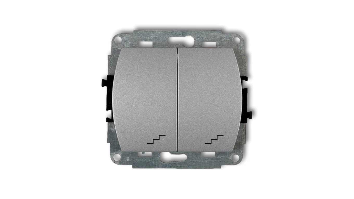 ICON Mechanizm łącznika podwójnego schodowego (dwa klawisze bez piktogramów) srebrny metalik 7IWP-33.1