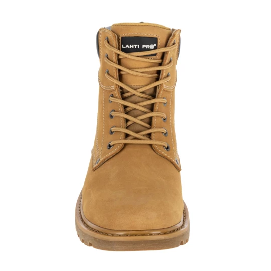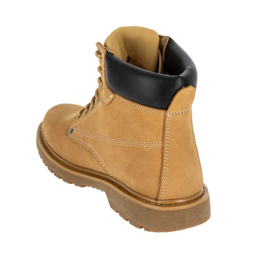 - MATERIAŁ: Wierzch: wysokiej jakości licowa skóra nubukowa. Podszewka: dzianina siatkowa. Wyściółka: wymienna, 1,5 cm grubości w części pięty, miękka i elastyczna. Podeszwa: gumowa o właściwościach antypoślizgowych (podłoże z płytek ceramicznych pokryte gliceryną), odporna na olej napędowy, głęboki bieżnik zwiększa przyczepność do podłoża