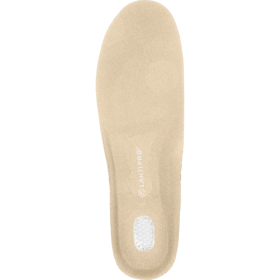 - MATERIAŁ: Wierzch: skóra zamszowa/tkanina typu Oxford o właściwościach hydrofobowych. Podszewka: wbudowana oddychająca i wodoodporna skarpeta z membraną/dzianina siatkowa. Wyściółka: wymienna (wkładki z elastyczną poduszką tłumiącą wstrząsy oraz podkładką łagodzącą nacisk stopy na podłoże). Podeszwa: gumowa, głęboki bieżnik zwiększa przyczepność do podłoża