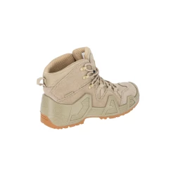 - MATERIAŁ: Wierzch: skóra zamszowa/tkanina typu Oxford o właściwościach hydrofobowych. Podszewka: wbudowana oddychająca i wodoodporna skarpeta z membraną/dzianina siatkowa. Wyściółka: wymienna (wkładki z elastyczną poduszką tłumiącą wstrząsy oraz podkładką łagodzącą nacisk stopy na podłoże). Podeszwa: gumowa, głęboki bieżnik zwiększa przyczepność do podłoża