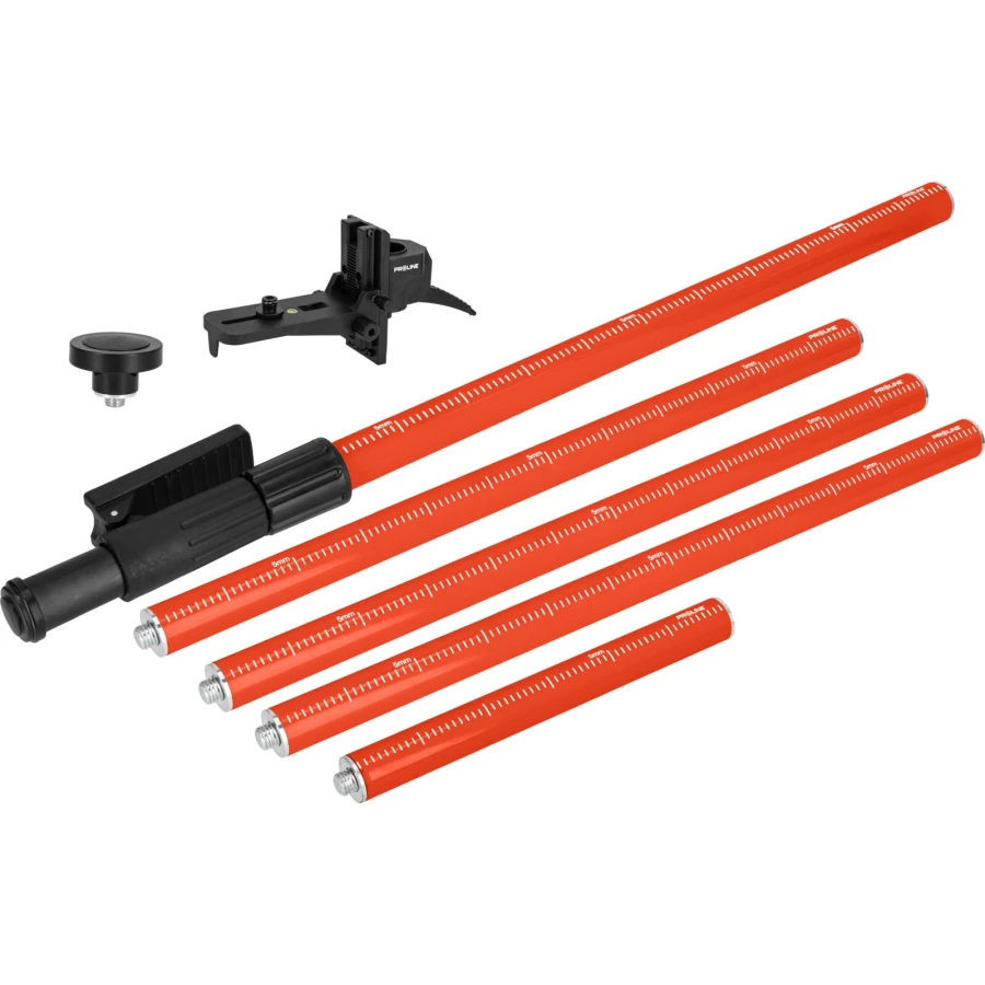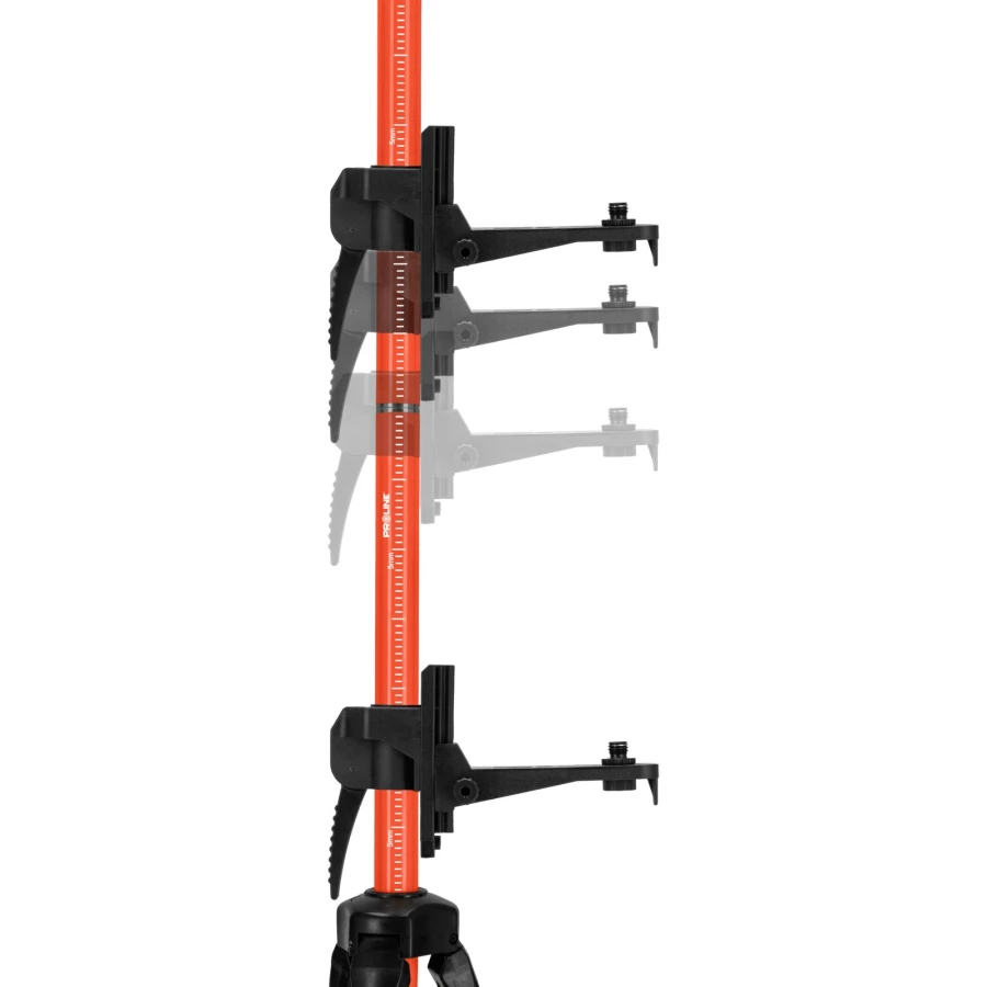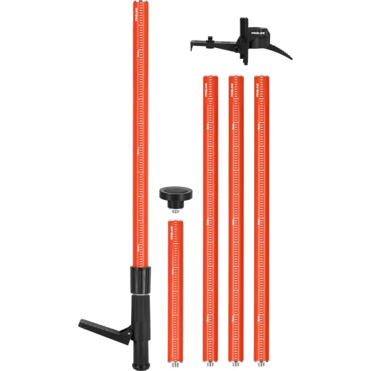 - Budowa zestawu pozwala na bezstopniowe podnoszenie bądź opuszczanie lasera praktycznie na całej długości tyczki