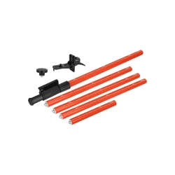 - Elementy zestawu: dolny element tyczki wyposażony w element teleskopowy ze stopką ułatwiającą klinowanie i górnej końcówce z otworem na śrubę o średnicy 5/8”
