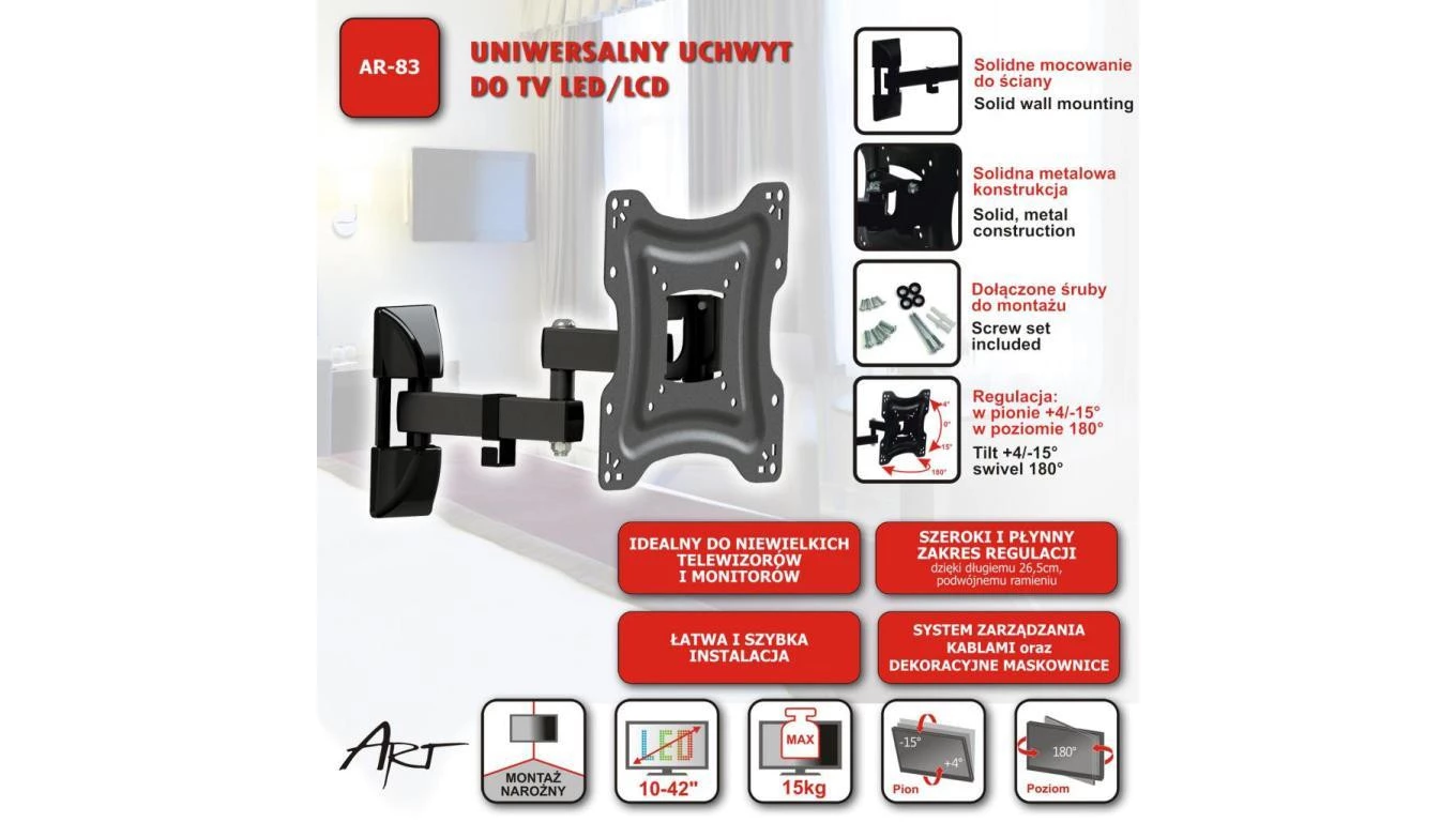 Uchwyt do TV LCD/LED 10-42 cali 15KG AR-83 ART reg.pion/poziom 26,5cm