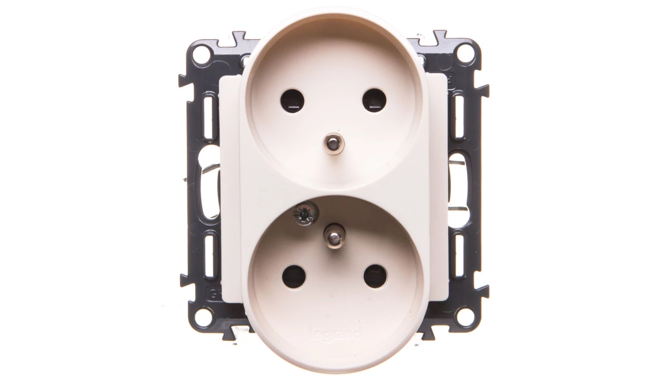 Simon 54 Gniazdo podwójne b/u 16A IP20 z przesłoną torów kremowe DG2MZ.01/41