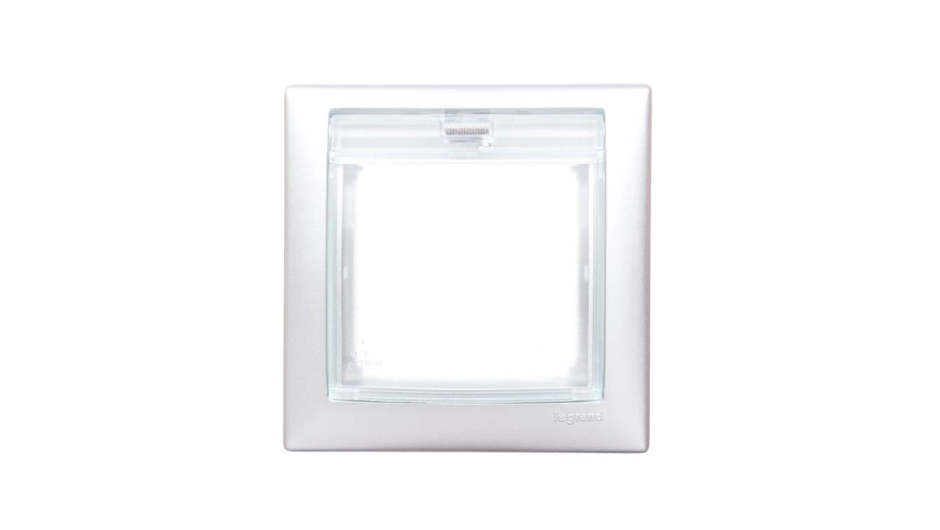 VALENA Ramka pojedyncza z klapką przezroczystą zieloną IP44 aluminium 770150