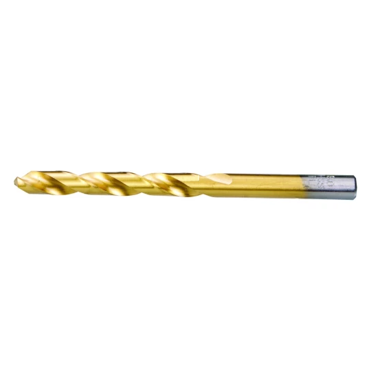 - Wiertła wykonane całkowicie metodą szlifowania, powlekane azotkiem tytanu zwiększającym ich żywotność oraz poprawiającym jakość wykończenia otworów i umożliwjającym stosowanie wyższych parametrów obróbki