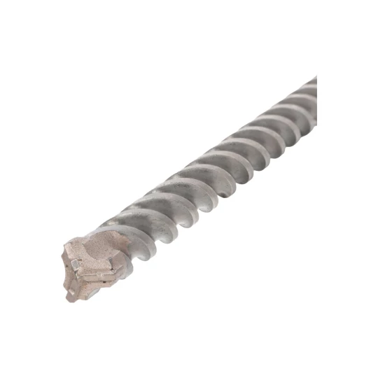 - Trzy równomiernie rozmieszczone ostrza zapewniają: stabilne prowadzenie wiertła, zmniejszenie drgań podczas kontaktu ze zbrojeniem, płynne i szybkie wiercenie w betonie
