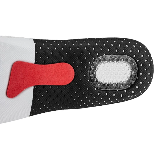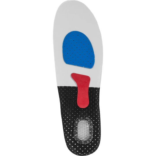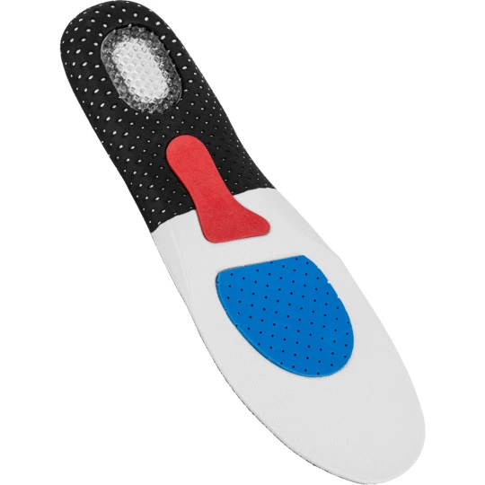 - Wkładki posiadają miękką i elastyczną poduszkę z TPR tłumiącą wstrząsy oraz podkładki z lateksu i EVA łagodzące nacisk stopy na podłoże