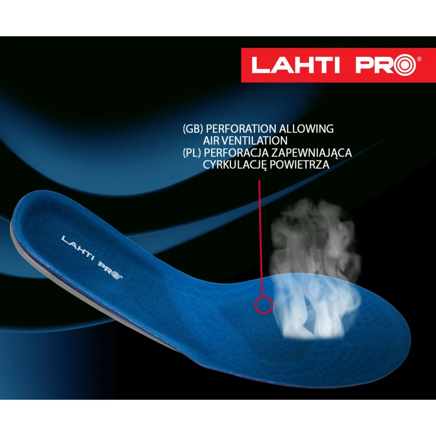 - Dzięki perforacji oraz oddychającej warstwie dzianiny wkładki zapewniają cyrkulację powietrza wewnątrz obuwia
