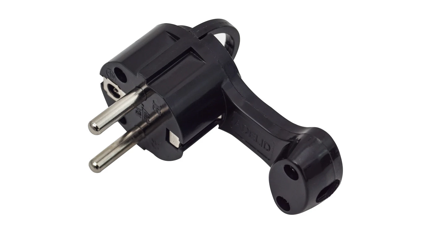 Wtyczka kątowa ultra płaska z uchwytem za meble czarna
