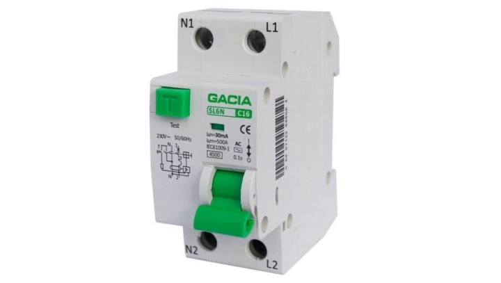 Wyłącznik różnicowoprądowy z członem nadprądowym 1P+N 10A C 30mA, typ AC SL6N1P+NC10A30mAAC