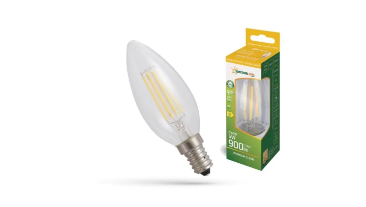 Żarówka LED E14 230V 6W świecowa COG transparentna neutralna