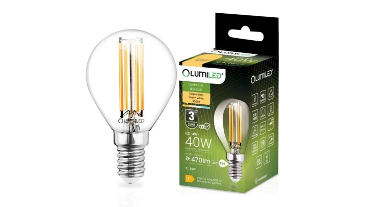 Żarówka LED E14 Kulka P45 4W = 40W 470lm 3000K Ciepła 360 FILAMENT LUMILED