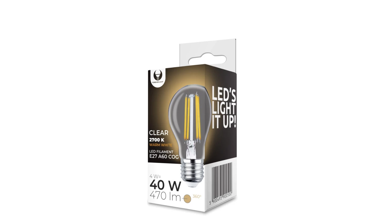 Żarówka LED Filament E27 A60 4W 230V 2700K 470lm COG przezroczysta Forever Light
