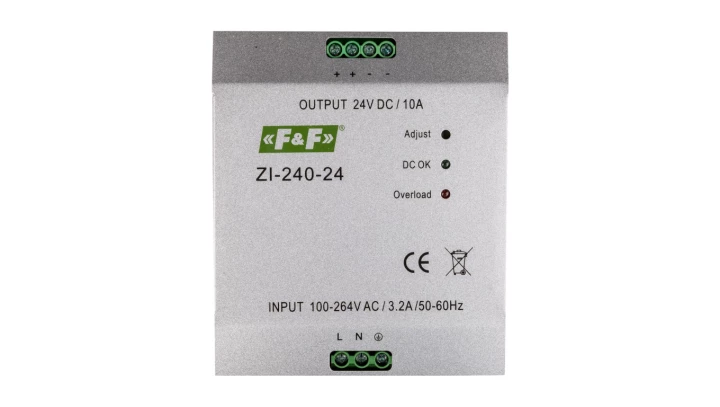 Zasilacz impulsowy 230VAC/24VDC 240W 10A ZI-240-24V