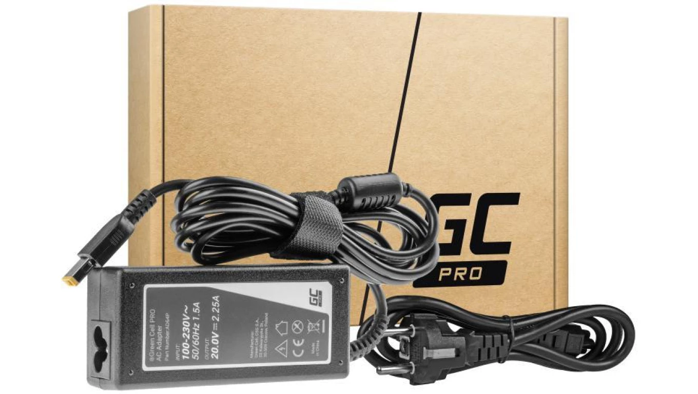 ZASILACZ ŁADOWARKA DO LAPTOPA LENOVO Green Cell PRO AD64P 20V 2,25A 45W Slim Tip