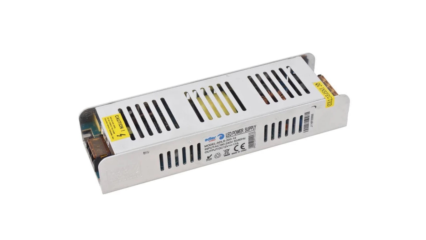 Zasilacz LED 12V 17A 200W SLIM metalowa obudowa ADLS-200-12
