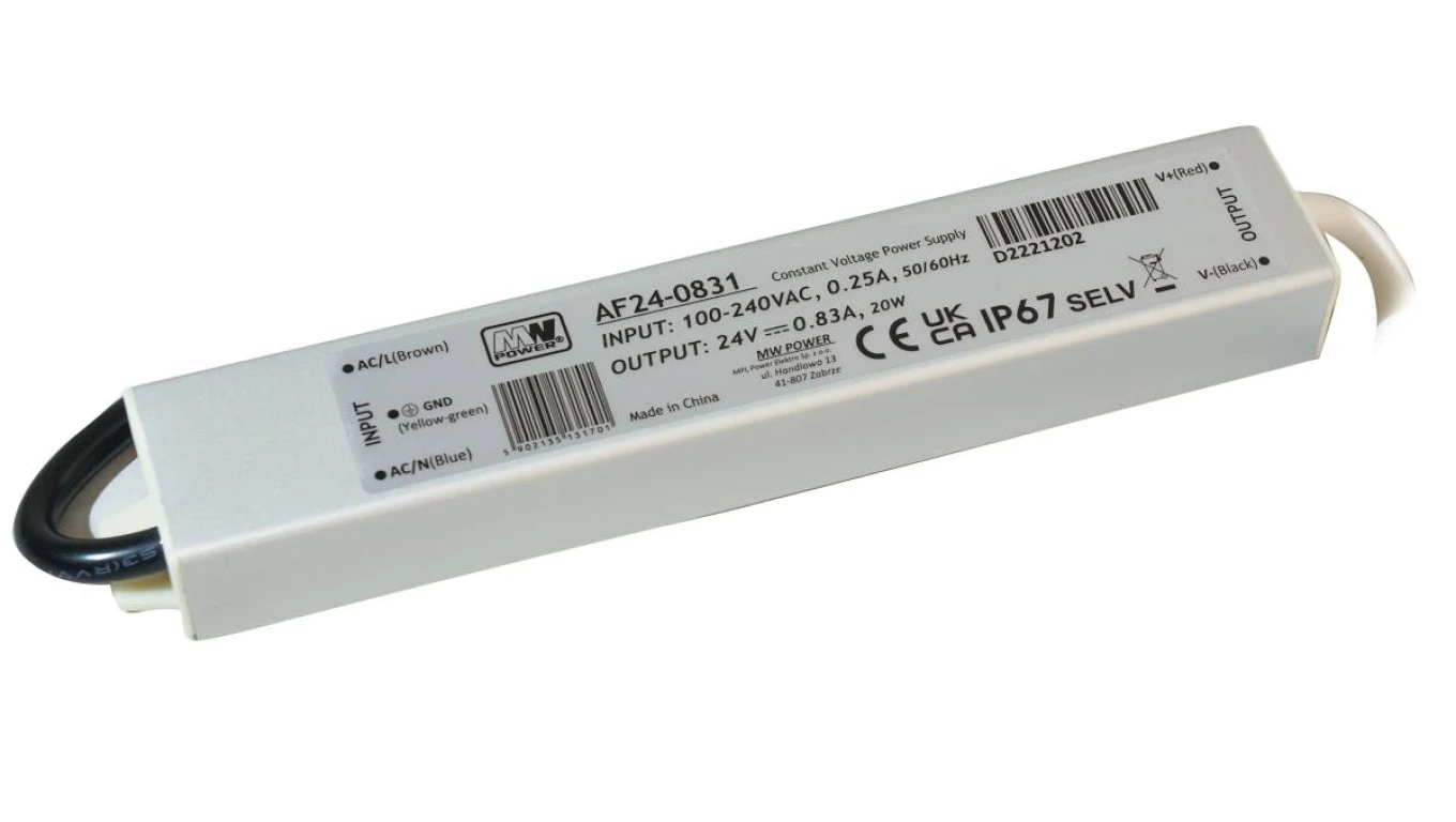 Zasilacz LED 20W 24V 0,83A IP67 metalowa obudowa AF24-0831 MW POWER