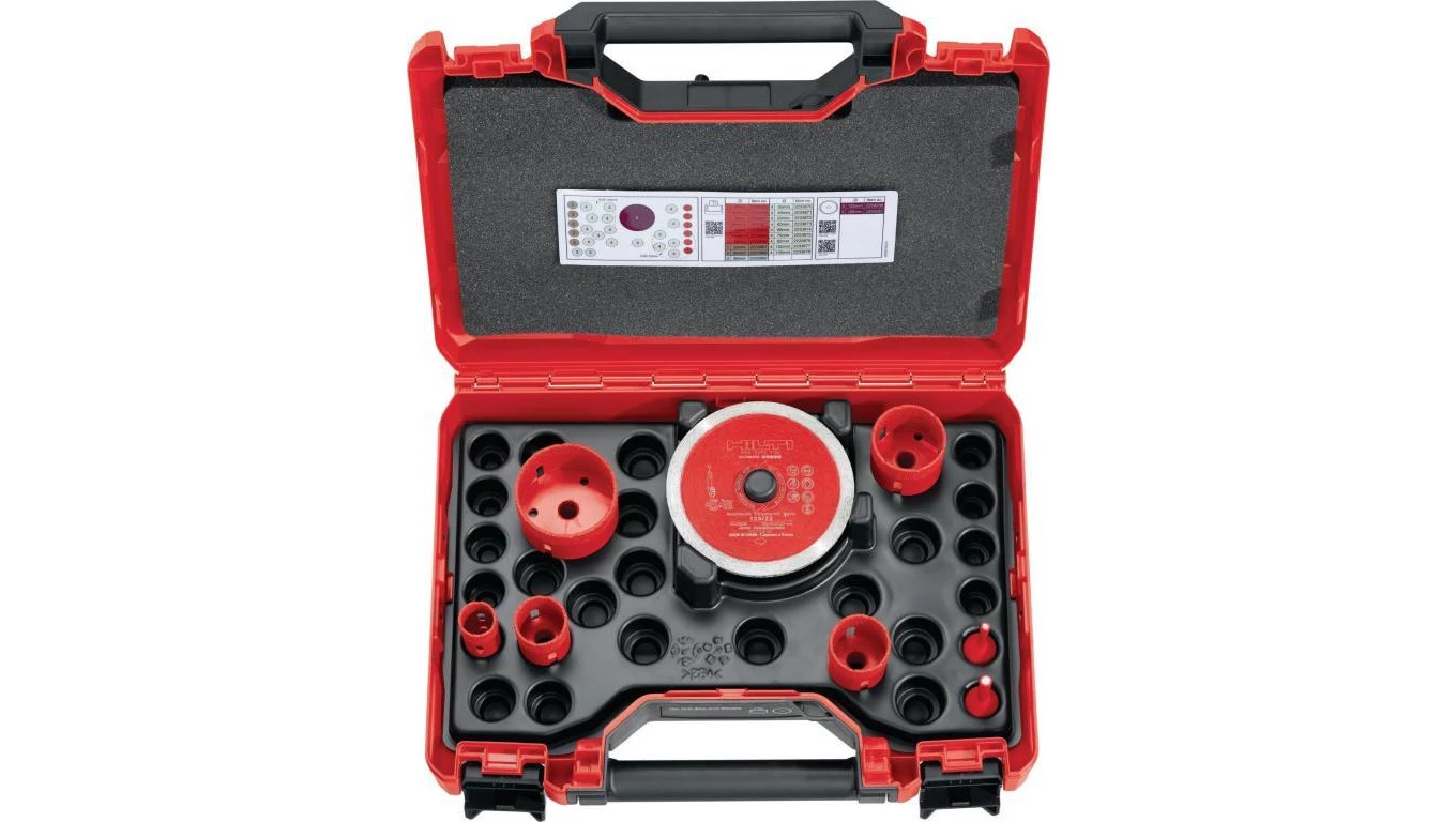 Zestaw wierteł do płytek 6,8,25,35,40,50,68mm i tarcz 125mm do cięcia softihard tile w walizce M14 / M14 zestaw