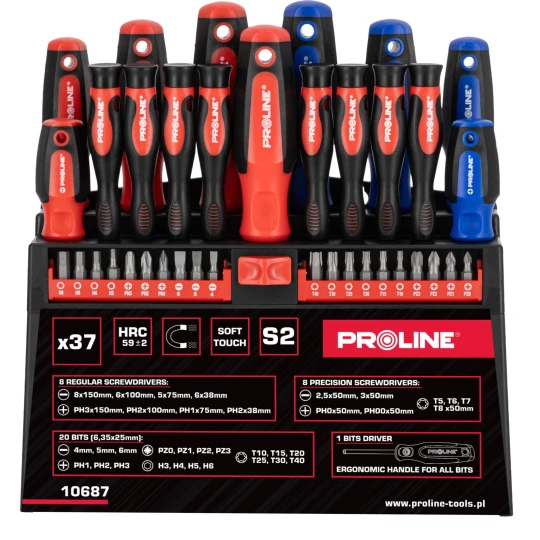 ZESTAW WKRĘTAKÓW 37 SZT.,SOFT-TOUCH,S2,MAGNES,STOJAK,PROLINE
