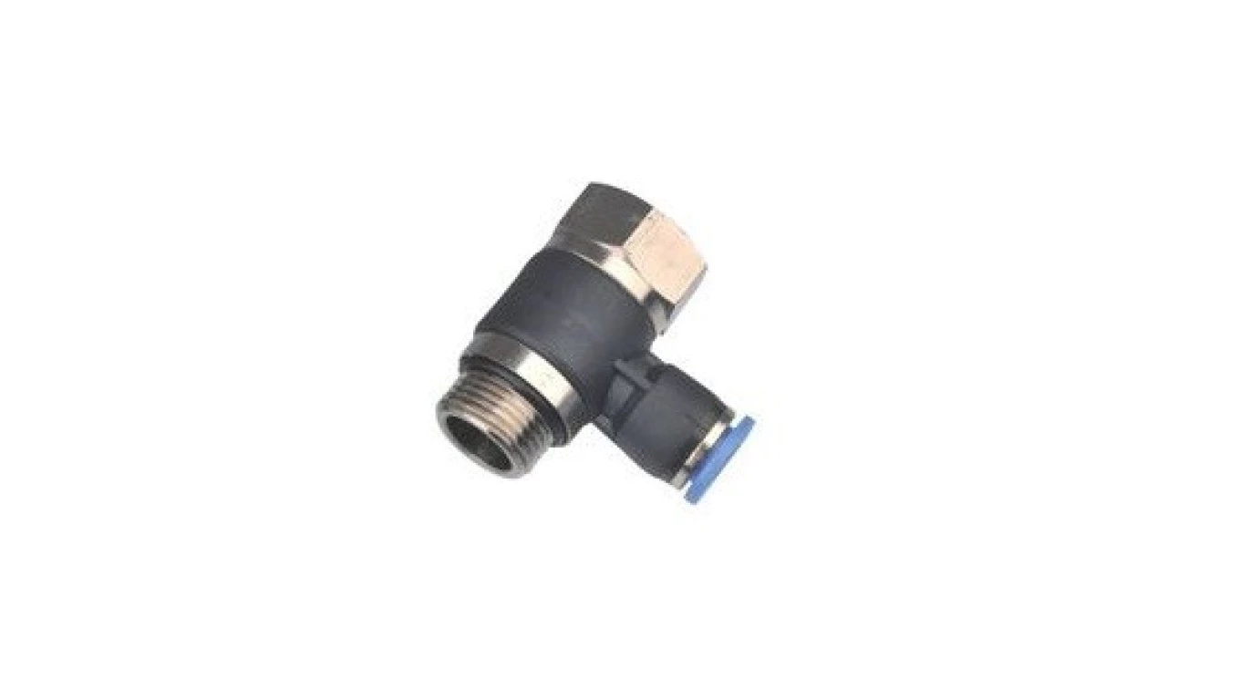 Złączka pneumatyczna wtykowa kątowa banjo G 1/4 GW/GZ do węża fi 4 mm, tworzywo sztuczne