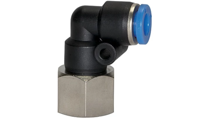 Złączka pneumatyczna wtykowa kątowa G 3/8 GW do węża fi 6 mm, tworzywo sztuczme