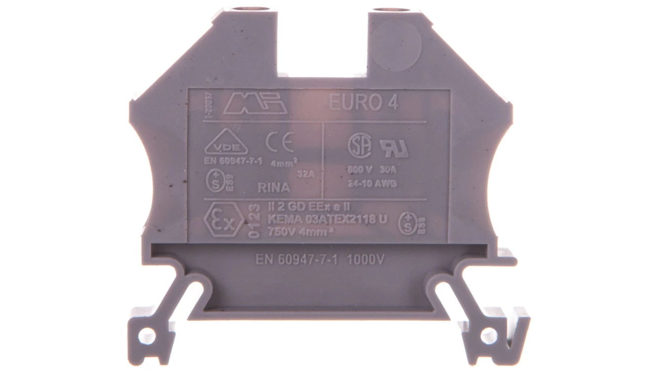 Złączka szynowa 2-przewodowa 4mm2 szara EURO 43409