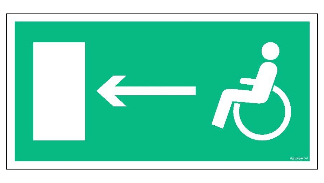 ZNAK - AC010 Wyjście ewakuacyjne dla niepełnosprawnych w lewo 30 x 15 cm PS - Płyta 1mm foto.