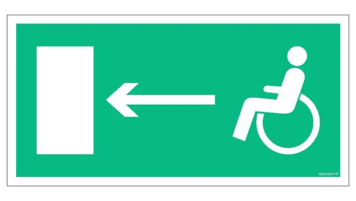 ZNAK - AC010 Wyjście ewakuacyjne dla niepełnosprawnych w lewo 40 x 20 cm KS - Folia podłogowa foto.