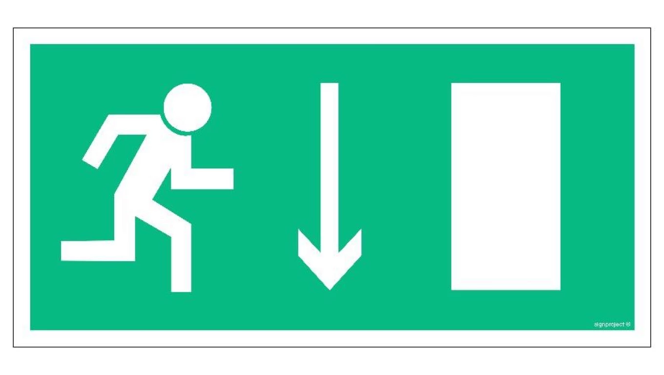 ZNAK - AC011 Wyjście ewakuacyjne w prawo w dół 40 x 20 cm PS - Płyta 1mm foto.