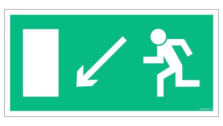 ZNAK - AC014 Wyjście ewakuacyjne w lewo w dół 30 x 15 cm FS - Folia samoprzylepna foto.