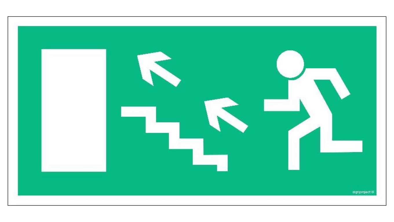 ZNAK - AC019 Wyjście ewakuacyjne w lewo schodami w górę 30 x 15 cm FS - Folia samoprzylepna foto.