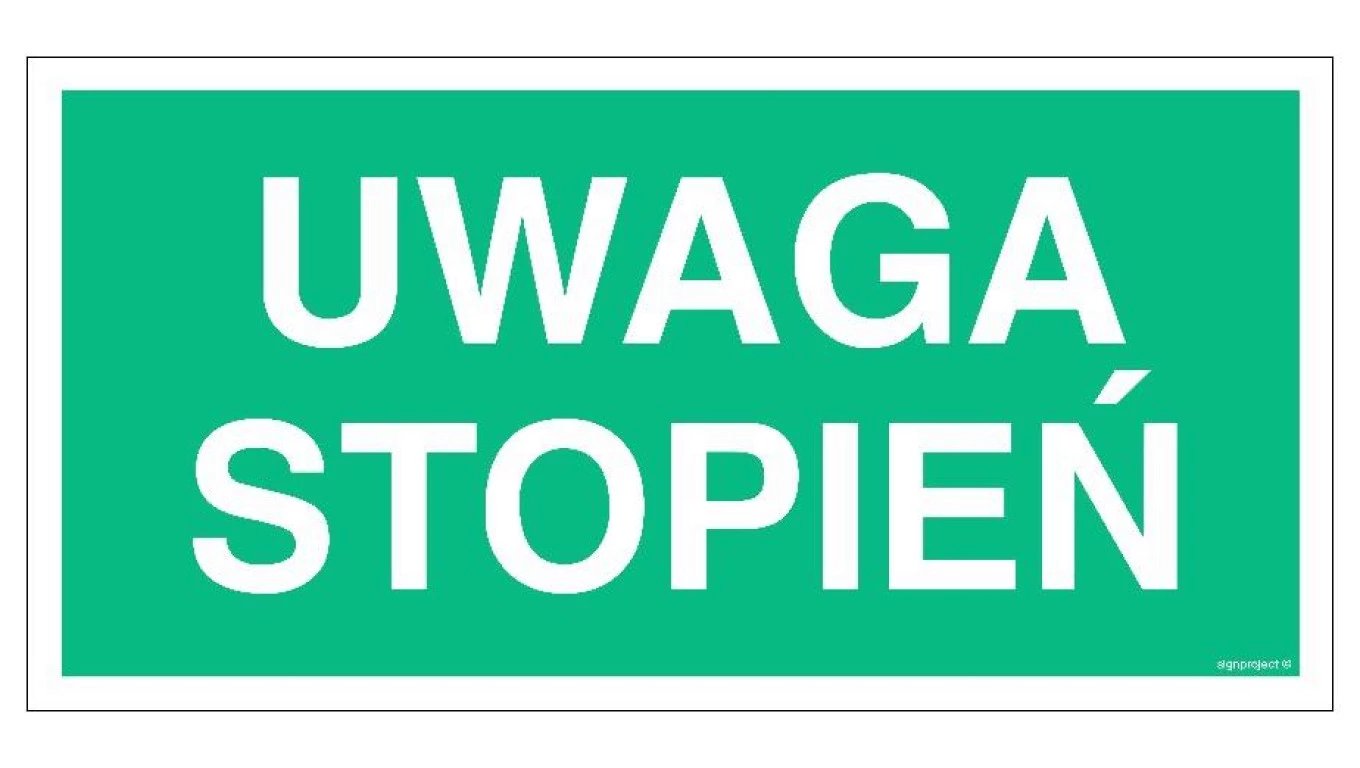 ZNAK - AC023 Uwaga stopień 20 x 10 cm FS - Folia samoprzylepna foto.