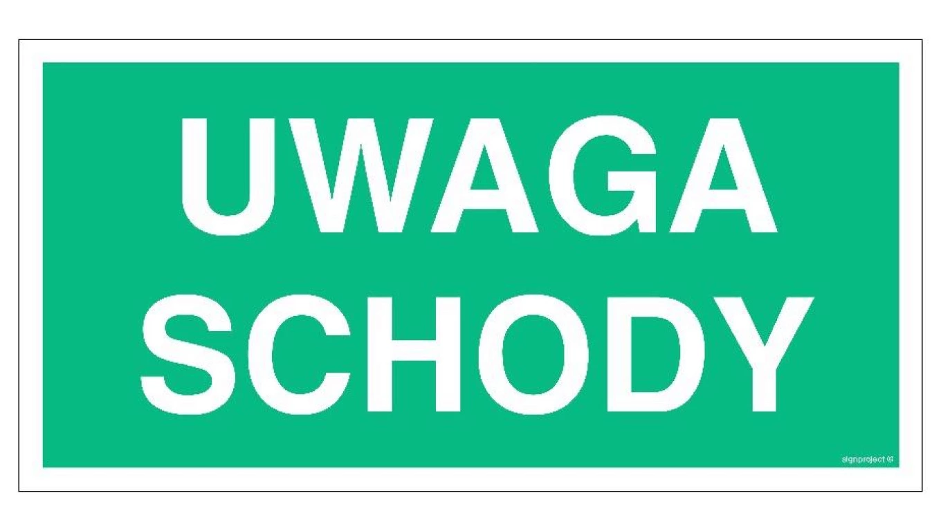 ZNAK - AC037 Uwaga schody 30 x 15 cm PS - Płyta 1mm foto.