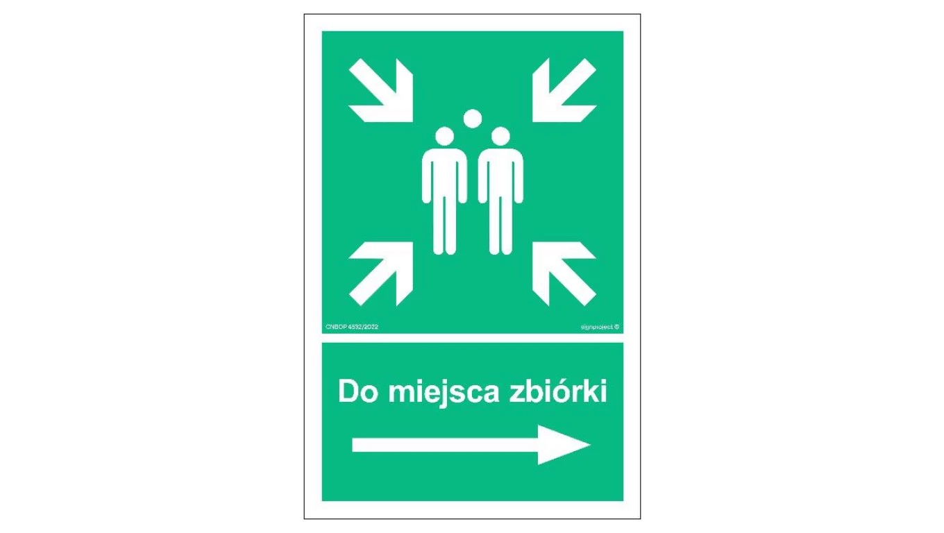 ZNAK - AC042 Do miejsca zbiórki w prawo 25 x 37,5 cm TS - Płyta TD foto.