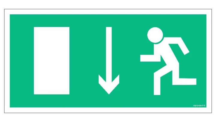 ZNAK - AC053 Wyjście ewakuacyjne lewostronne w dół 30 x 15 cm TS - Płyta TD foto.