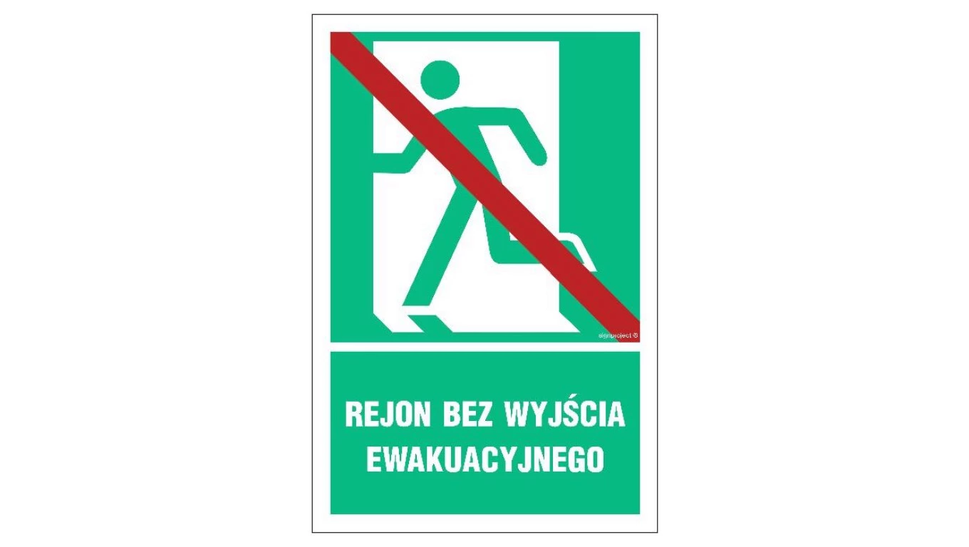 ZNAK - AC054 Rejon bez wyjścia ewakuacyjnego lewostronny 70 x 105 cm PS - Płyta 1mm foto.