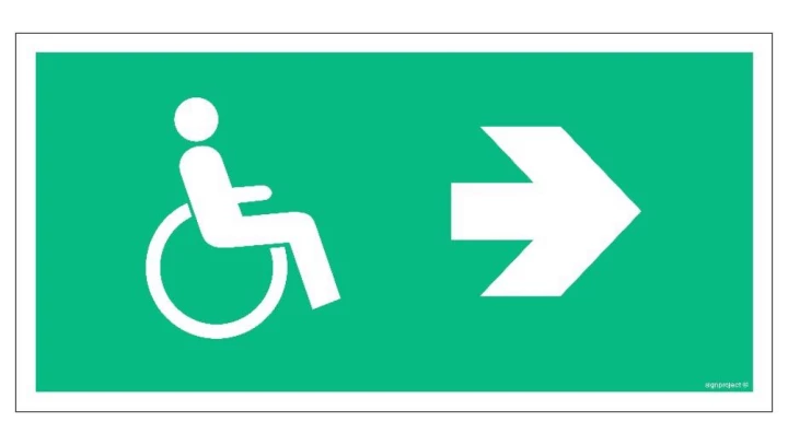 ZNAK - AC059 Kierunek ewakuacji dla niepełnosprawnych w prawo 30 x 15 cm TS - Płyta TD foto.